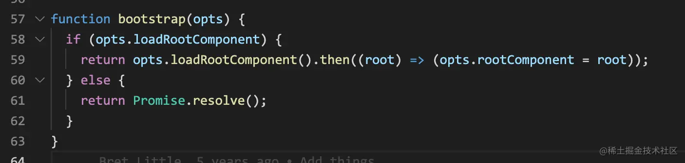 bootstrap函数,会先判断一下是否在配置项中存在loadRootComponent。配置项loadRootComponent笔者理解是可以用来加载当前子应用依赖的父级应用或者其他的依赖资源。