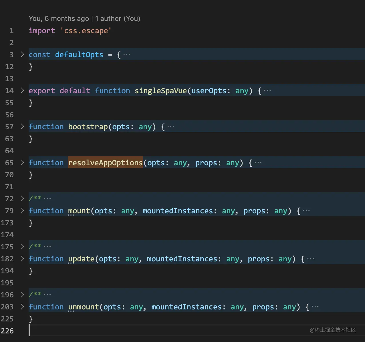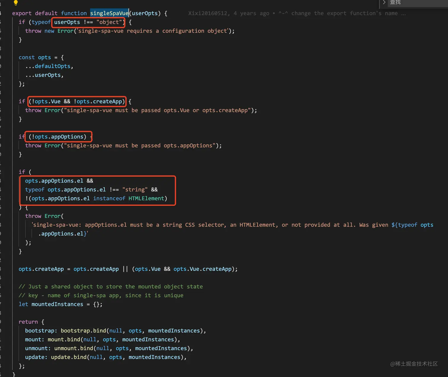 single-spa-vue中提供的singleSpaVue方法会接收userOpts配置信息,配置信息会和默认的配置项defaultOpts合并以后再进行进行后续处理。