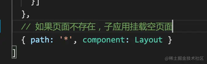 同时笔者对vue的route配置也进行了一些优化,当页面不存在的时候,此时会把子应用中的一个空组件挂载到dom上面,避免虽然页面被隐藏掉,但是dom仍然在html中,导致页面dom过多。