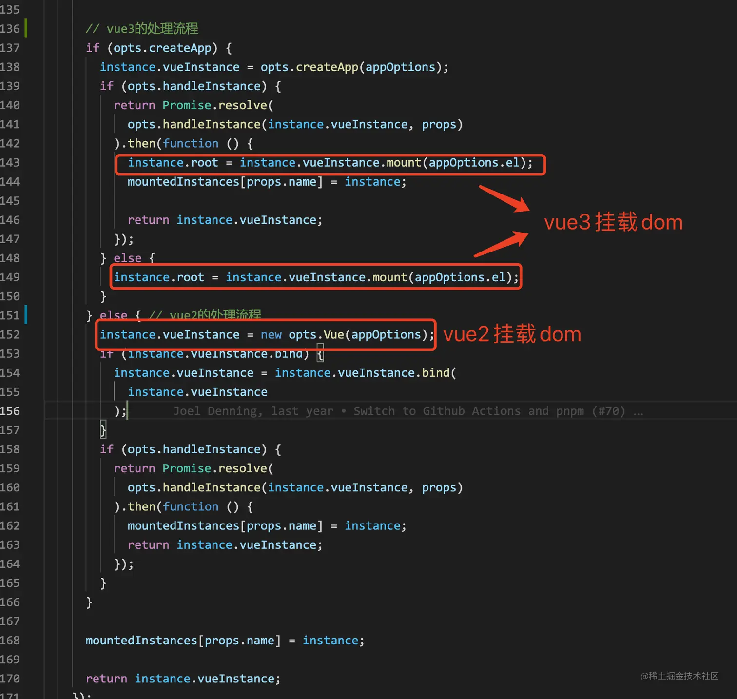 这里支持两种挂载方式,一种是使用vue3的createApp方式挂载,一种是使用vue2的new Vue方式进行挂载。这里的挂载方式其实和我们在使用vue挂载到dom方式的配置是一样的。