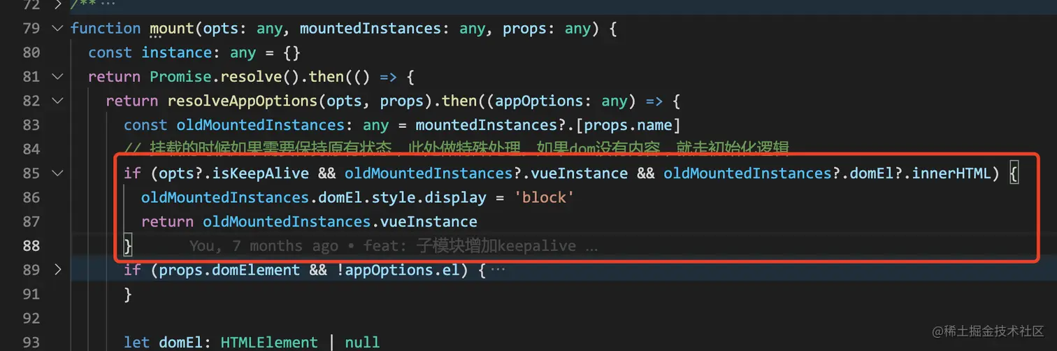 在single-spa-vue配置项中调用mount方法挂载子应用的时候,会判断当前子应用是否存在,如果子应用存在则直接把子页面显示出来,由于子应用并未被销毁,此时子应用中的keep-alive就会一直生效,并且保存页面的状态。