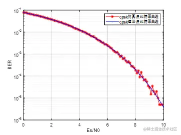 legend('qpsk仿真误比特率曲线','qpsk理论误比特率曲线');