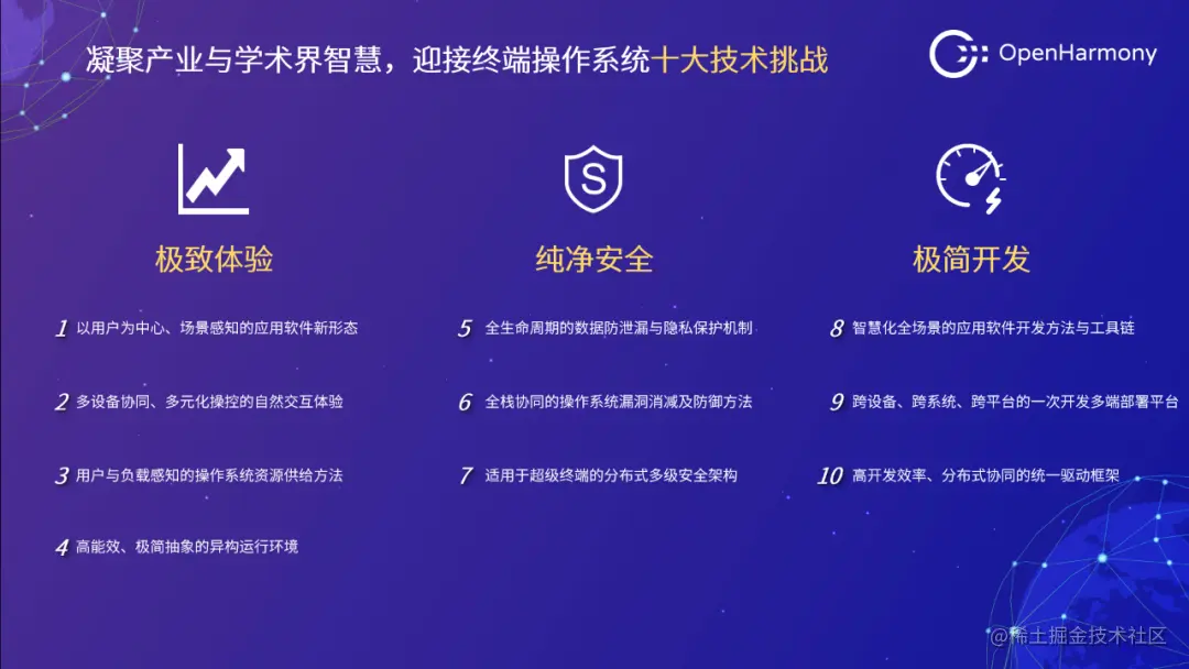 • 终端OS十大技术挑战方向:2023年2月25日,在技术峰会上,基于长期在操作系统领域的实践,以及对万物智联趋势的研究,技术指导委员会发布《终端操作系统十大技术挑战方向》。