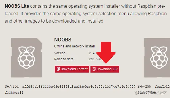 选择 NOOBS offline and network install DownloadZIP 下载