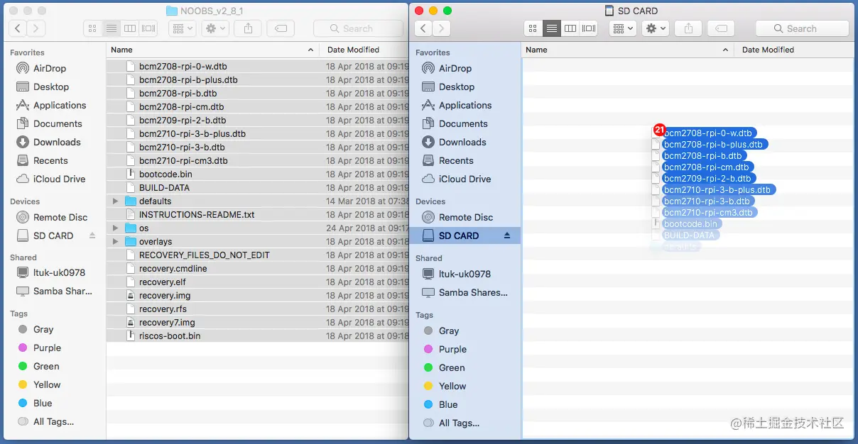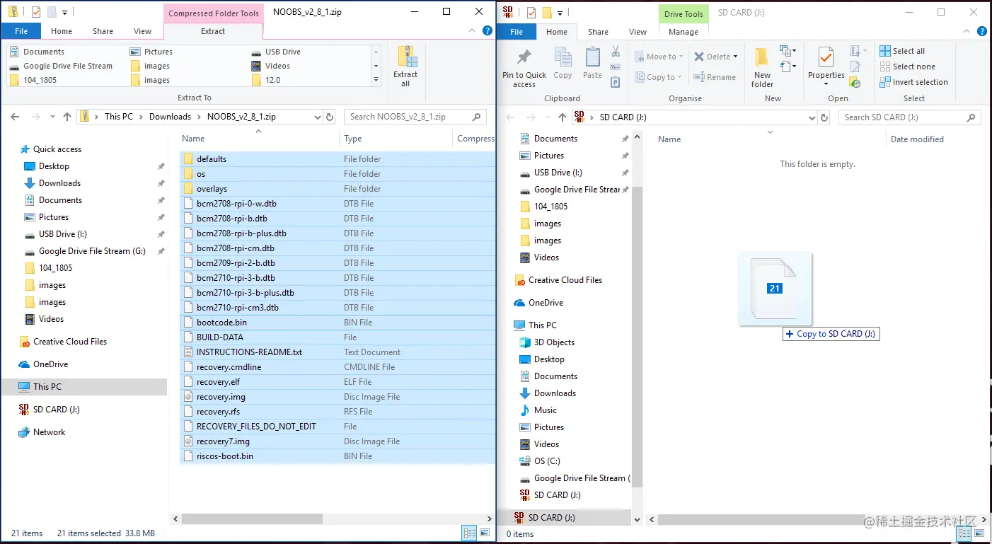 把下载好的 NOOBS 解压,直接拷贝到 SD 卡