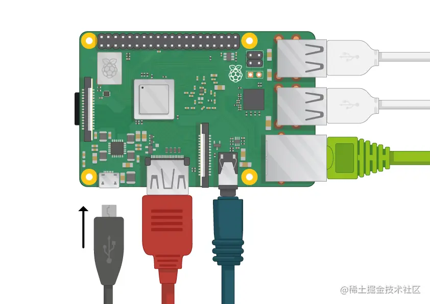 - 树莓派的 USB 接口插上鼠标、键盘