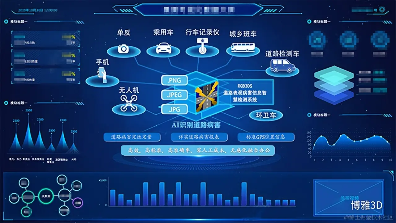 自从我国开启推行数字城市建设,现在已经有很多试点城市/地区通过计算机、多媒体以及存储技术,运用遥感、 全球定位系统、地理信息系统、工程测量等技术搭建了城市信息化平台,部分地区更进一步开启智慧城市建设,以数据大屏等智能信息平台为展现形式开展工作。信息化提高了各行业管理效率和服务质量,也对基础数据的质量、更新频率、准确性提出了更高的要求,在道路运维方面,【RGB3DS道路表观病害信息智慧检测系统】开放API等多种形式数据接口全面帮助运营者提升运营成效,降低运维成本。
