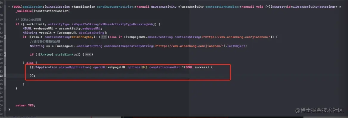 第一检查前端网页里是否有加targetAction_iOS参数;第二检查代理方法是否有在启动的时候调用到[ShareSDK setRestoreSceneDelegate:self];;第三闭环分享的库文件有没有导入