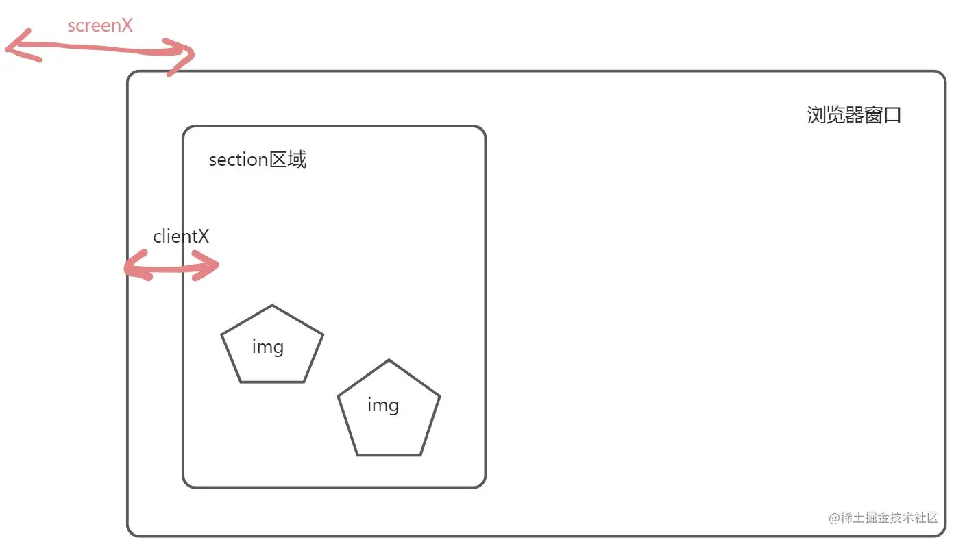 * clientX: 鼠标相对于浏览器x轴的位置