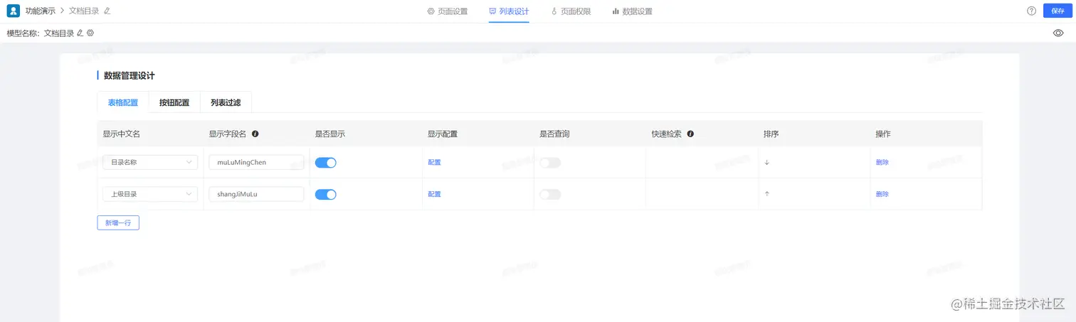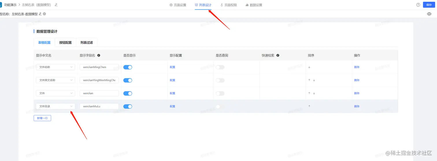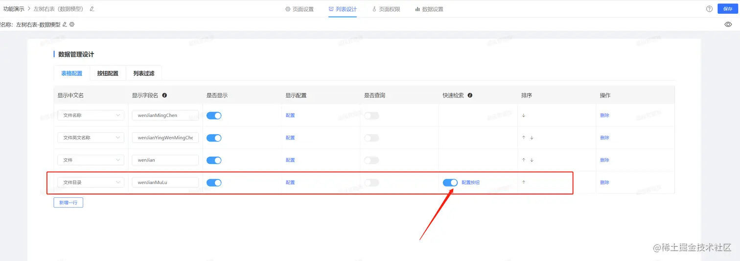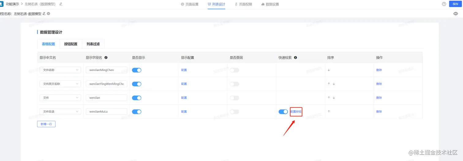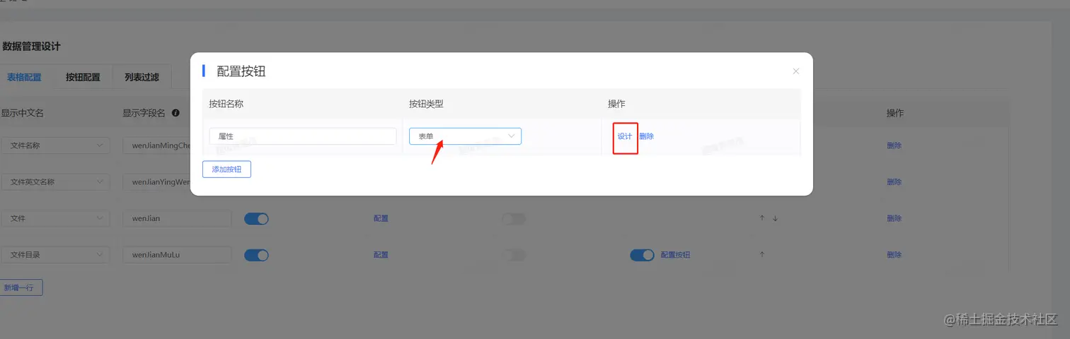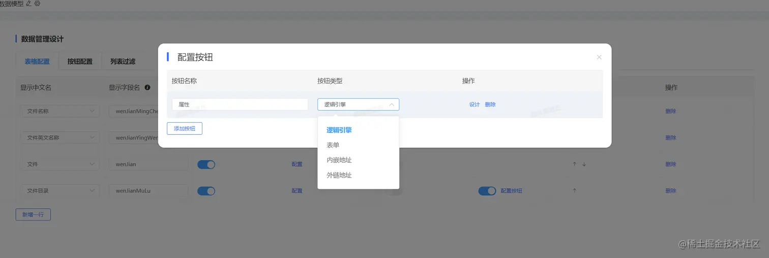 4、扩展。在列表设计(此处为文件管理页面)中可以对树配置额外按钮,可选择按钮的类型,触发表单或者逻辑。