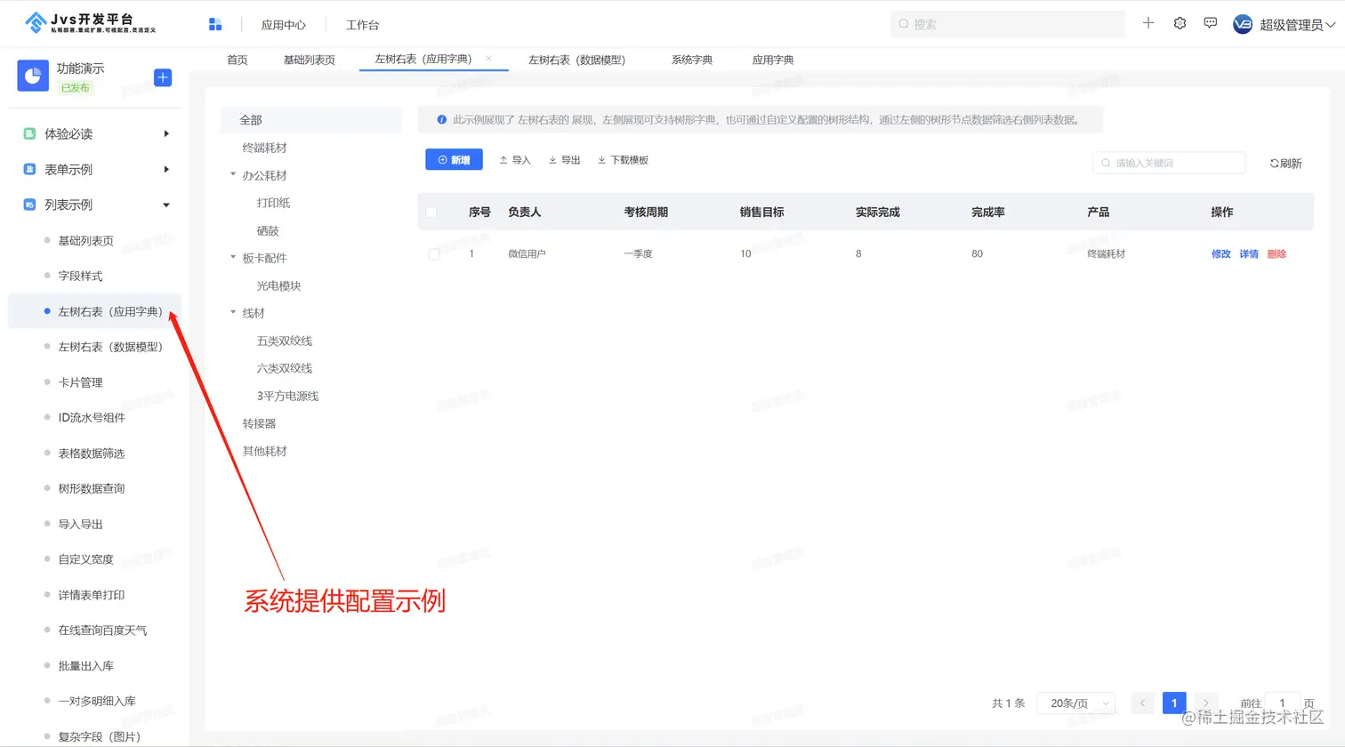 左树右表是我们在业务管理系统中常见的业务形态,如下图所示,树形结构用于多层级的数据的展示,列表页作为对应数据的横向行级展现。