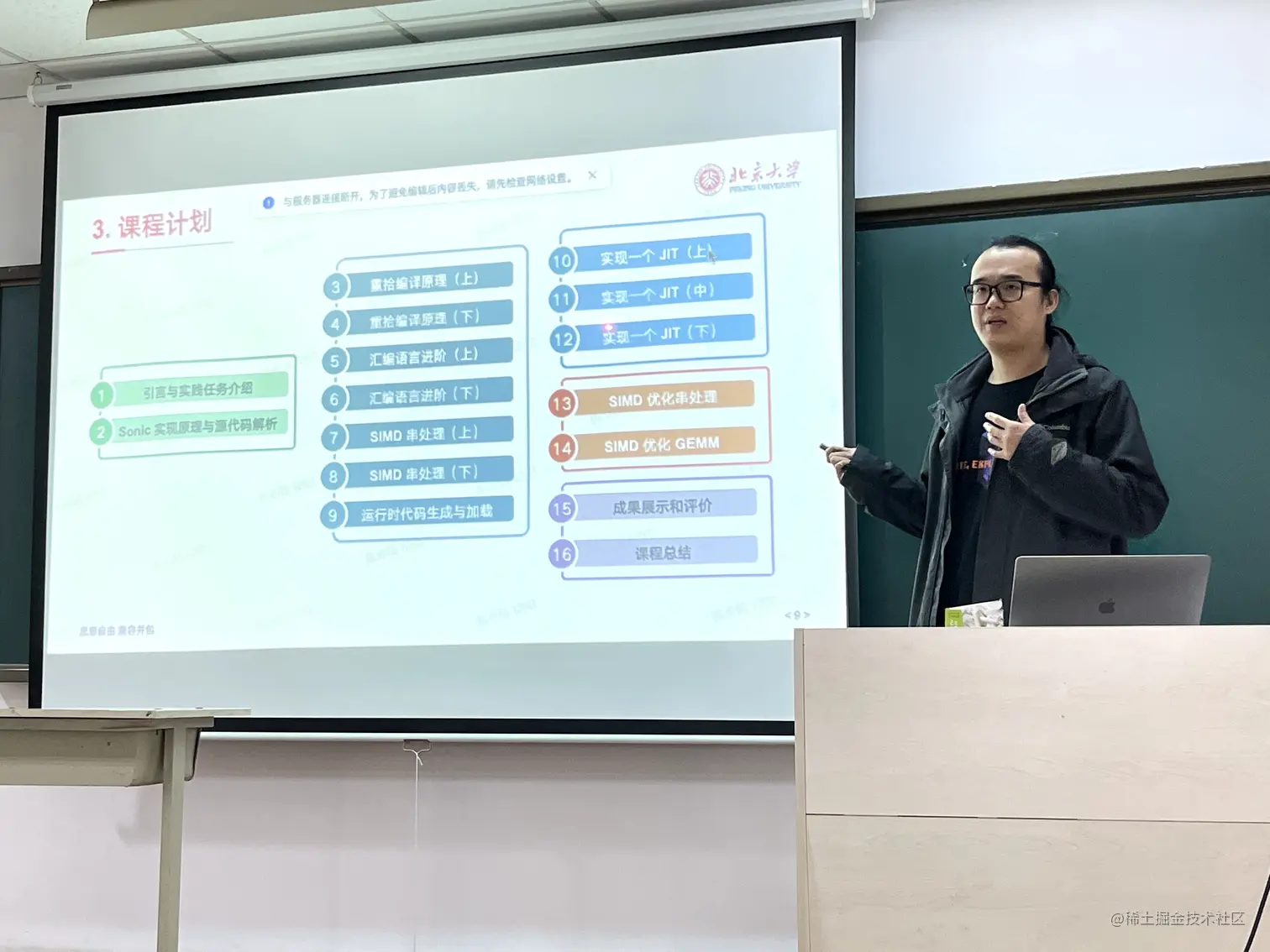 Sonic 项目负责人陈卓钰向同学们介绍了主导开发的开源项目,以及整体课程规划和开发任务,受到了同学们的普遍欢迎。希望让同学们在了解开源、参与开源实践的基础上,也对企业的开源策略有一定的了解。