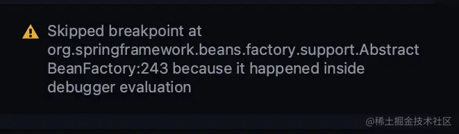 然后重启项目,选择 debug 模式,但是在运行之后 IDEA 提示断点被跳过了
