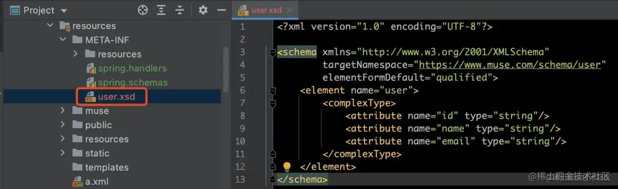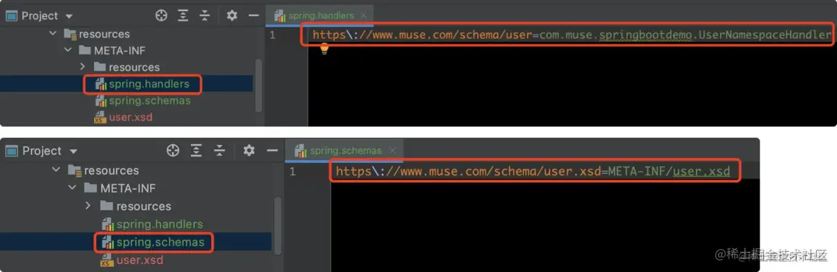 步骤 5:编写spring.handlers和spring.schemas文件,默认位置是/META-INF目录下