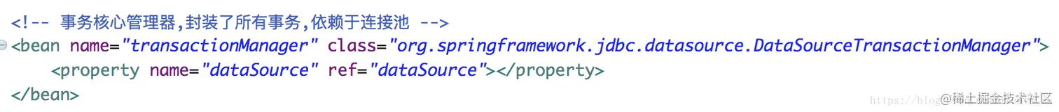 配置事务的核心管理器,它封装了所有事务,依赖于连接池(DataSourceTransactionManager)