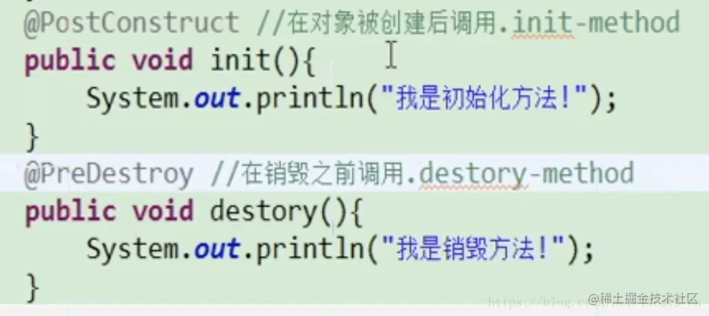 (1)配置一个方法作为生命周期初始化方法,spring会在对象创建之后立刻调用 init-method