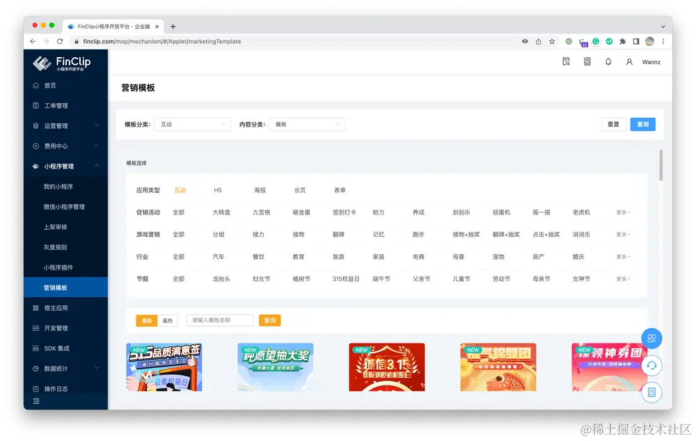 同时,FinClip 自带「营销模板」板块,能够帮助小程序与应用开发者快速在已有 App 中引入多个具备「营销能力」的小程序。(目前 FinClip 营销模版有超过 100万 正版模板素材,覆盖了超过 100+ 细分行业与 350万款场景应用。),为运营或者开发人员提供了极大便利