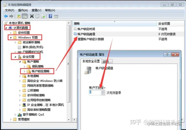 2、计算机设置---Windows设置---安全设置---账户策略---账户锁定策略”,然后到右侧窗格中的“账户锁定阈值”项,这里可以设置用户账户被锁定的登录尝试失败的次数,该值在0到999之间,默认为0表示登录次数不受限制,我们可以改为3或10。(设置完成后,还可以设置账户锁定的时间)