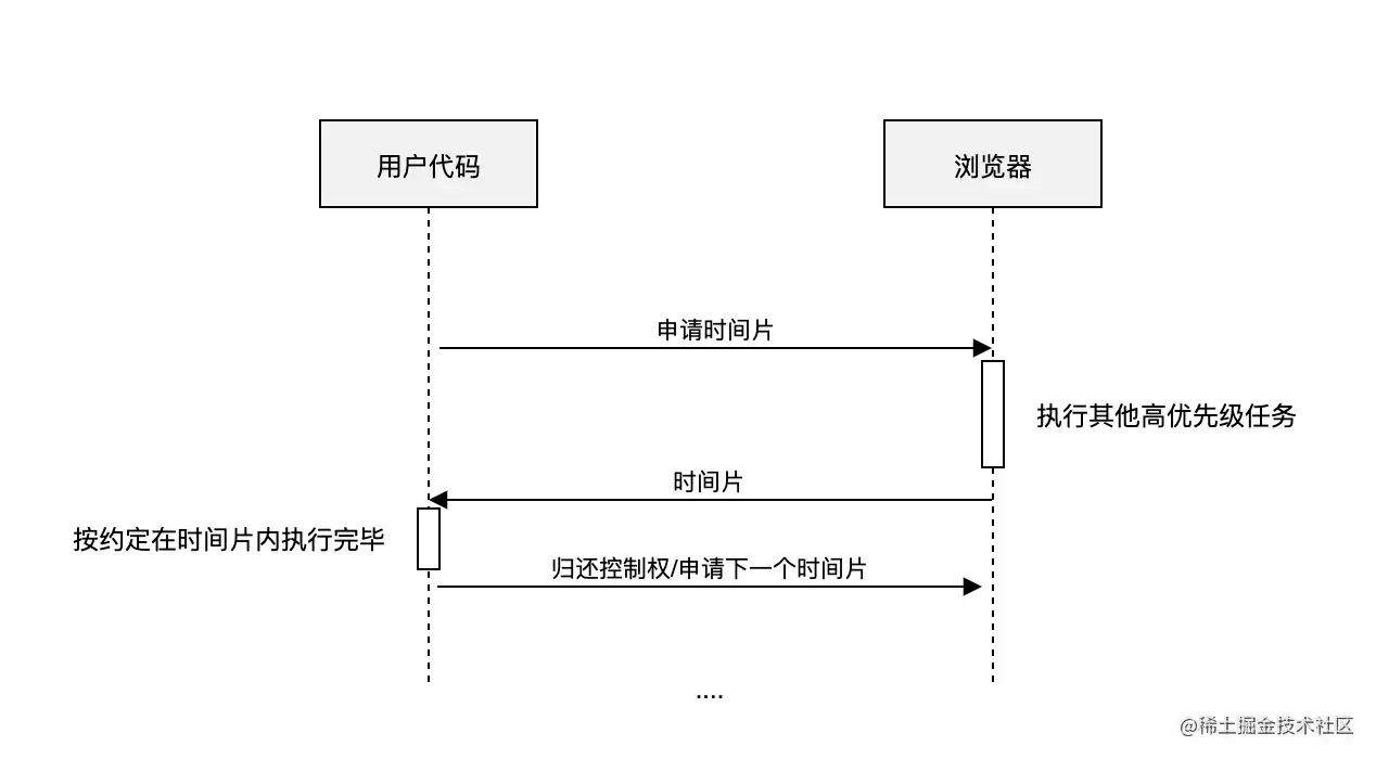 如果要实现主动让出机制,那就得知道浏览器什么时候有空,有多少时间能够让我们执行任务