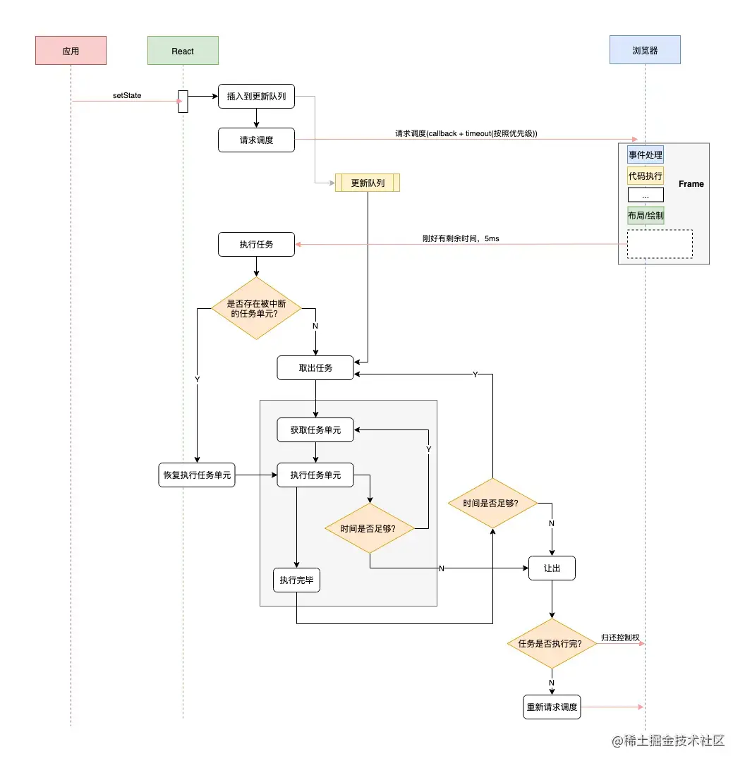 - Fiber的两大特点,可中断可恢复,并且可以主动让出浏览器资源