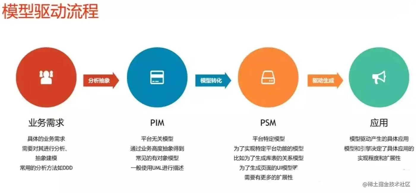 模型驱动开发会赋予DevOps真正的生命。DevOps更多的关注在整体商业价值的实现,从业务部门原始需求到IT开发实现和持续运维、通过运营数据反馈到业务部门进行改进优化,从而形成针对业务商业价值的生命周期闭环管理。