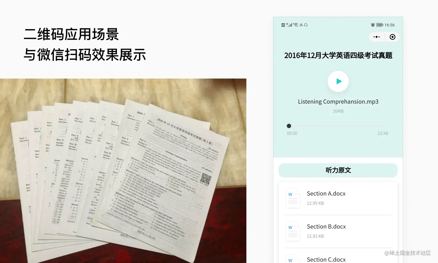 教学培训、技术交底、办事指南、产品说明等应用场景中,通过二维码展示文字、图片、文档、音视频等纸面无法展示的丰富内容。微信扫码就能查看,并可以在后台随时更新展示内容、实时统计扫描量。