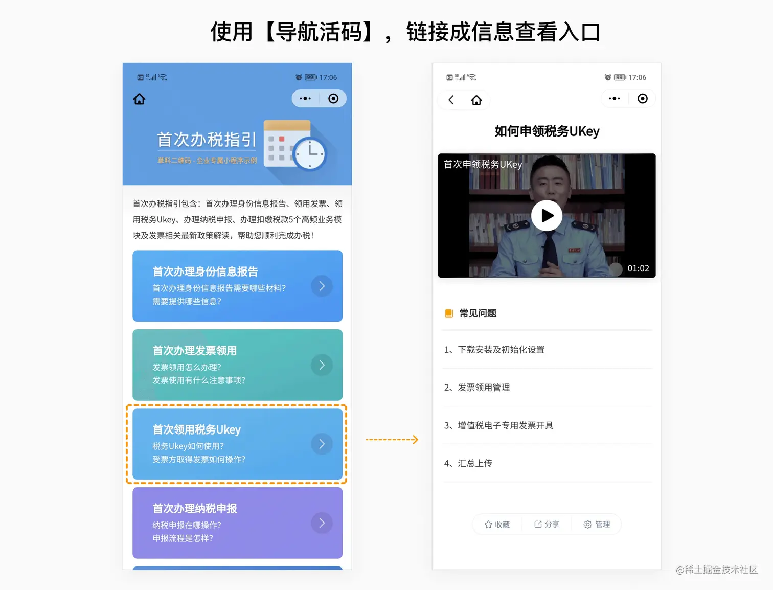 使用“导航链接”功能将多个内容汇总成一个二维码,作为信息查看总入口。比如在办事指南的应用中,将多个二维码汇总成一个总目录。