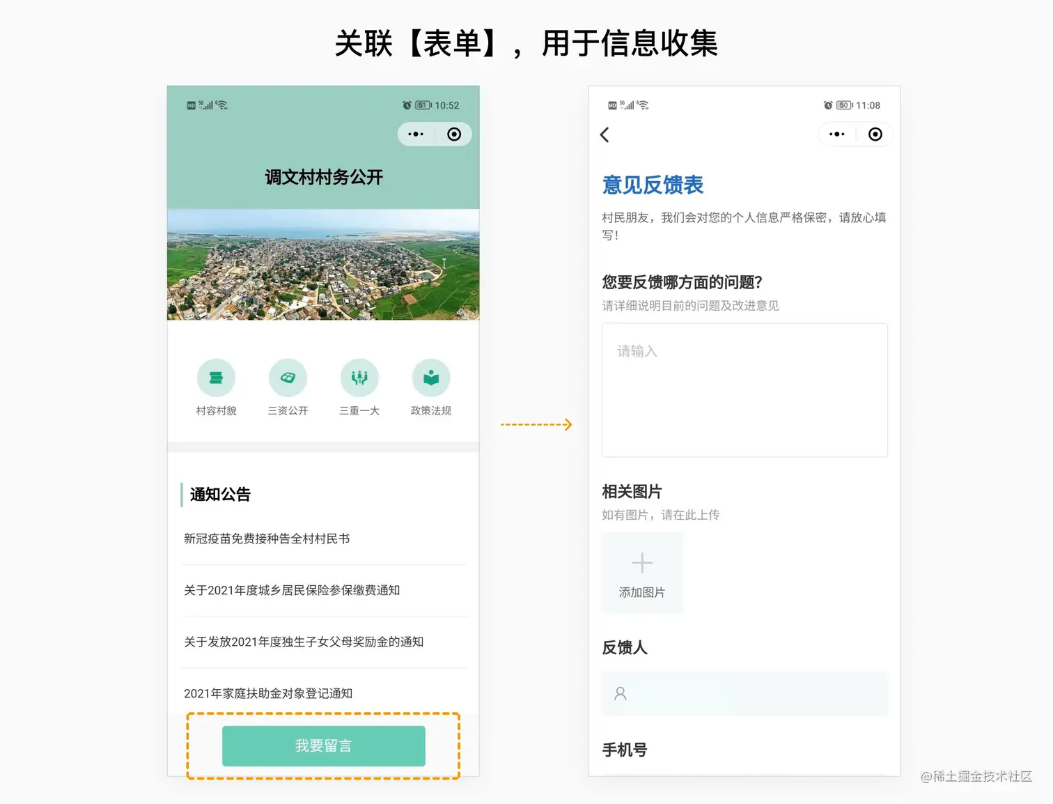 使用“表单”功能,在二维码中关联上相关表单,用于收集用户反馈信息,比如在办事指南、信息公示二维码中添加意见反馈,建立群众反馈渠道。