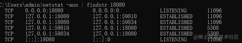 4)通过cmd,进行18080端口过滤,找到被占用的进程PID,最后通过PID对其占用的进程进行终止,后续设备已经能正常播放视频流了。