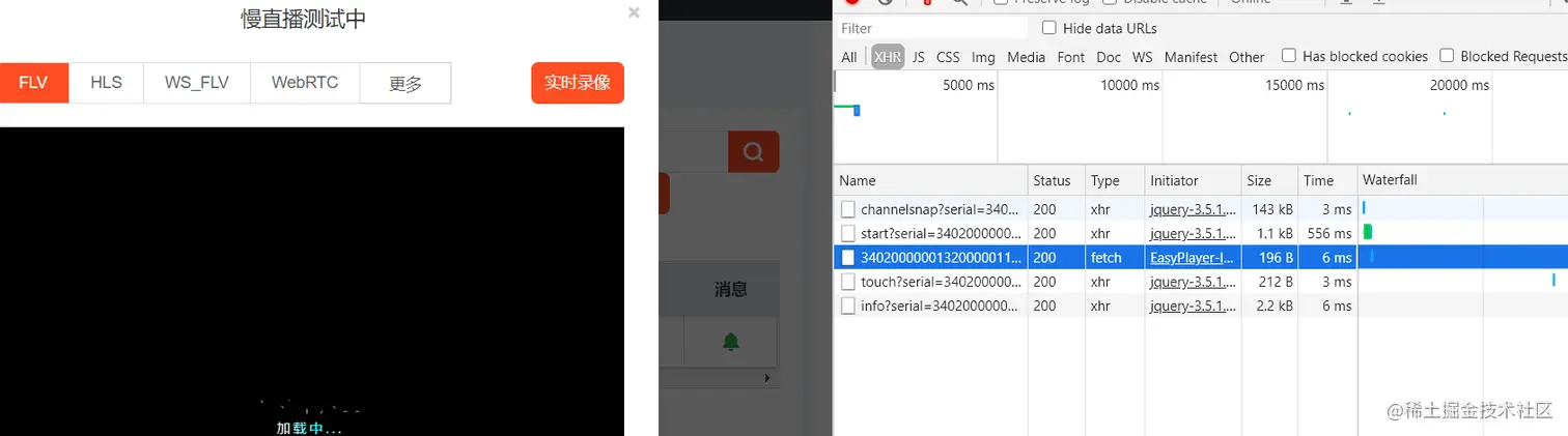 1)首先,通过浏览器F12(开发者调试工具)查看是否有视频流。经技术人员查看,发现有视频流,这表明软件服务启动成功,且摄像机与平台也成功交互;