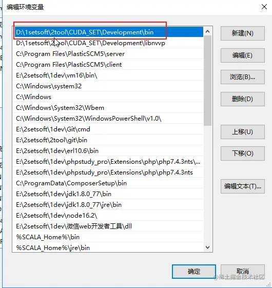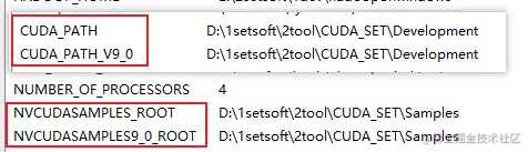 打开我的电脑属性,环境变量 -> 系统变量,查看是否有如下四个变量,再打开 Path,查看是否有 CUDA 的 bin 目录配置 (第二张图)。