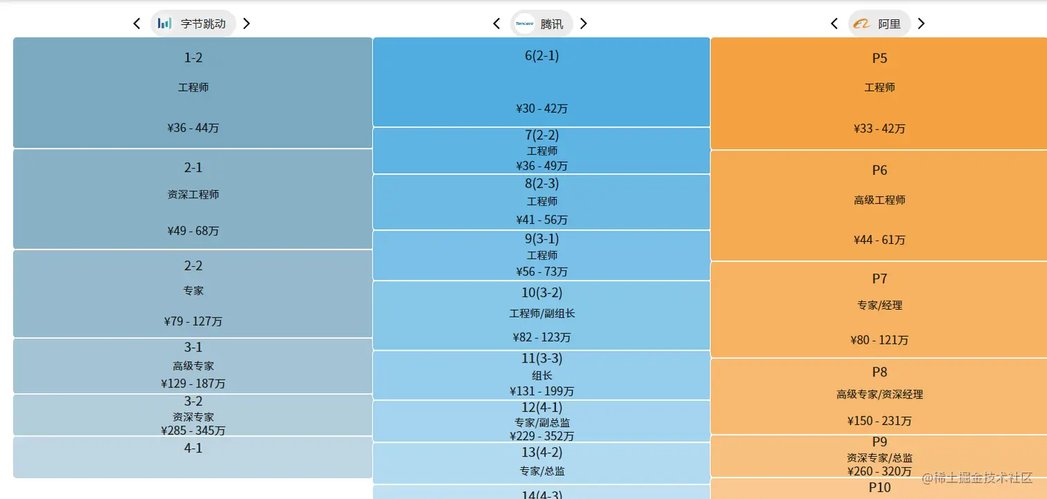 以阿里的职级体系为例,一个程序员要从P5走到P10,还是有很长的路要走,而要成为P10的资深总监,没混个几十年是达不到的,由此也可以看出,深耕技术永远没有尽头,甚至只有极少比例的程序员可以到达技术的天花板。