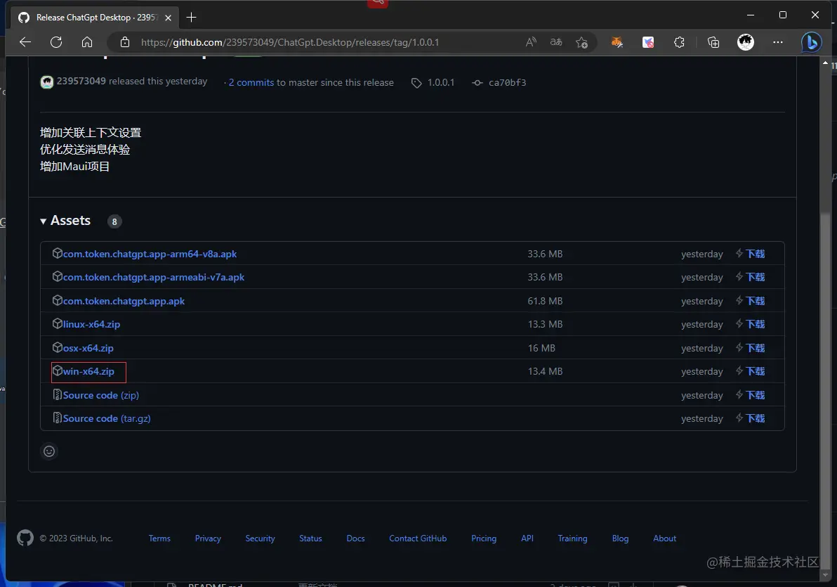 从239573049/ChatGpt.Desktop 这里下载ChatGpt 客户端,我们下载Win版本的