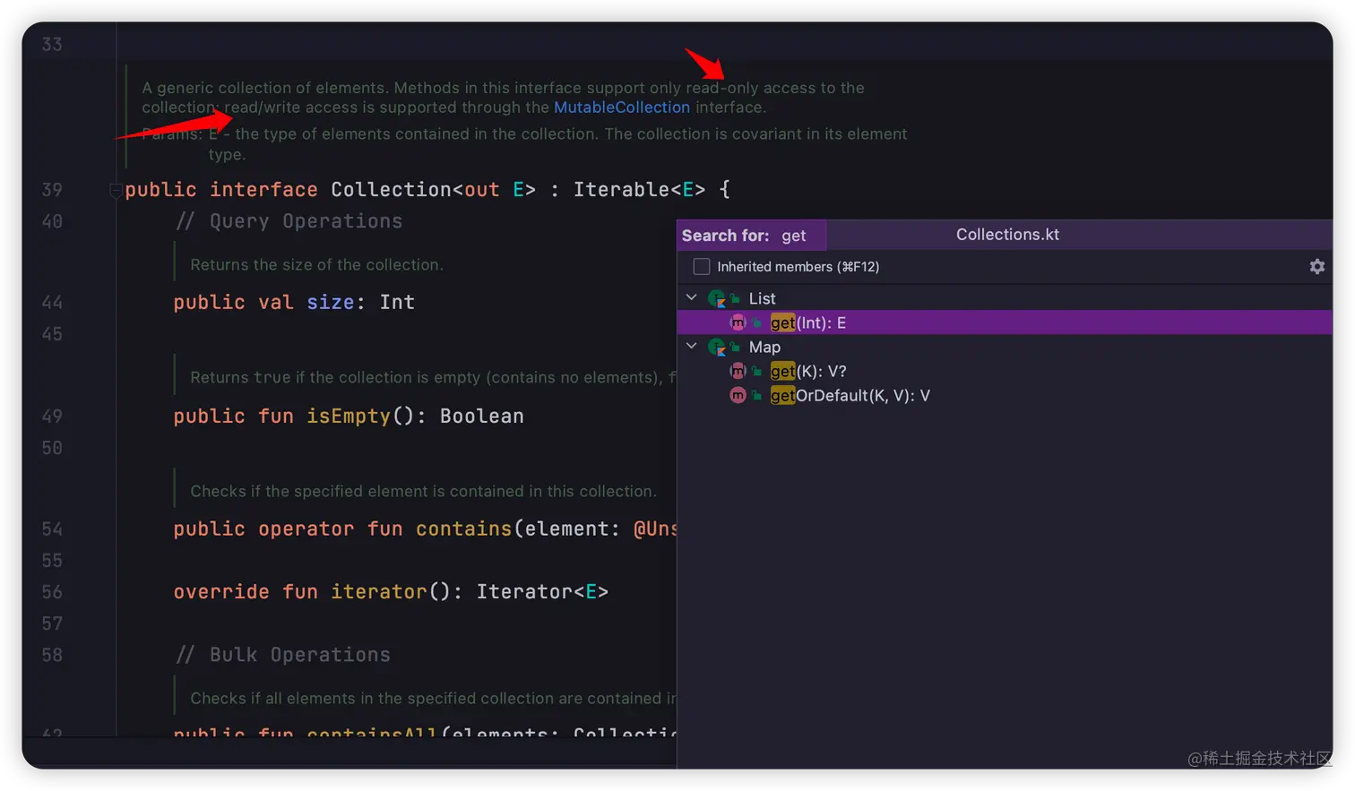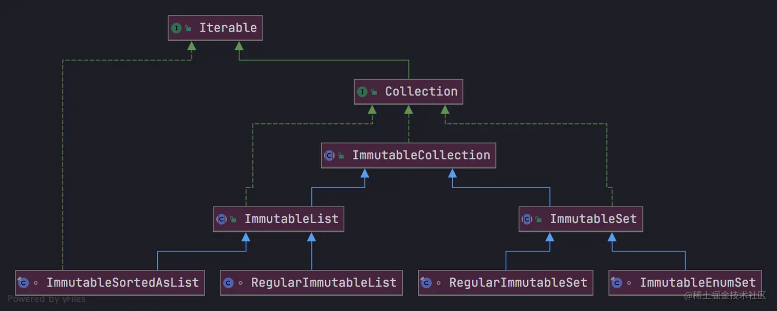 直接从接口层面区分了可变和不可变,可变的提供了add``remove等写方法,不可变的则只提供了 get等读方法