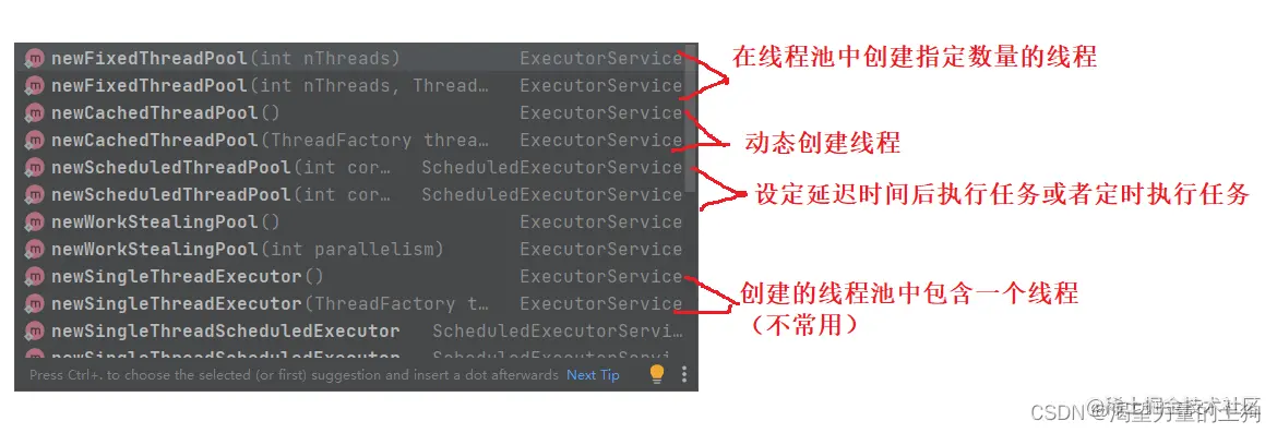 上面是其中一个简单的使用,关于线程池的创建还有很多方式,如: