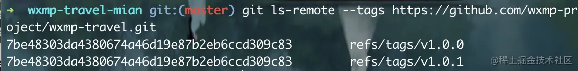 运行之后,返回了 wxmp-travel 仓库中的全部 tags