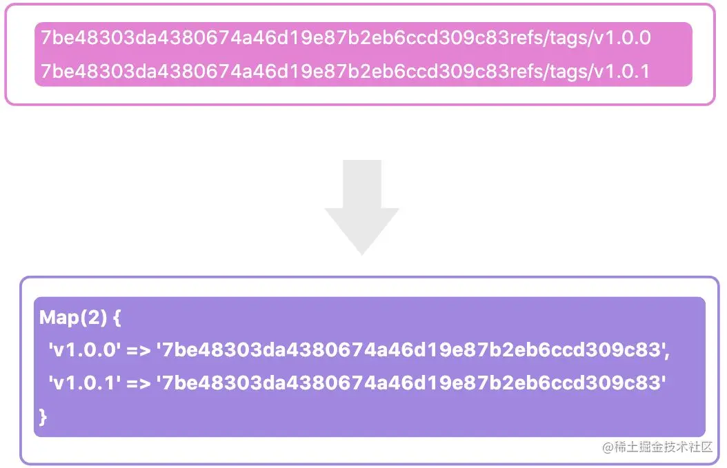 接下来,则是对返回值重置的过程。最终想要的效果是将返回的值重置为 Map 键值对,其中键为 tag 名,值为哈希值。