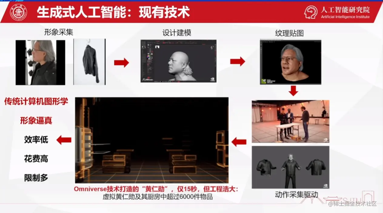 生成式虚拟数字人是指利用生成式人工智能技术,从真实的人类数据中学习,生成一个虚拟的数字化人类形象,其外貌、言谈举止和行为模式等方面均与真实的人类相似度极高。生成式虚拟数字人的应用领域非常广泛,包括电影、游戏、社交网络、虚拟现实、远程教育、在线客服等诸多领域。