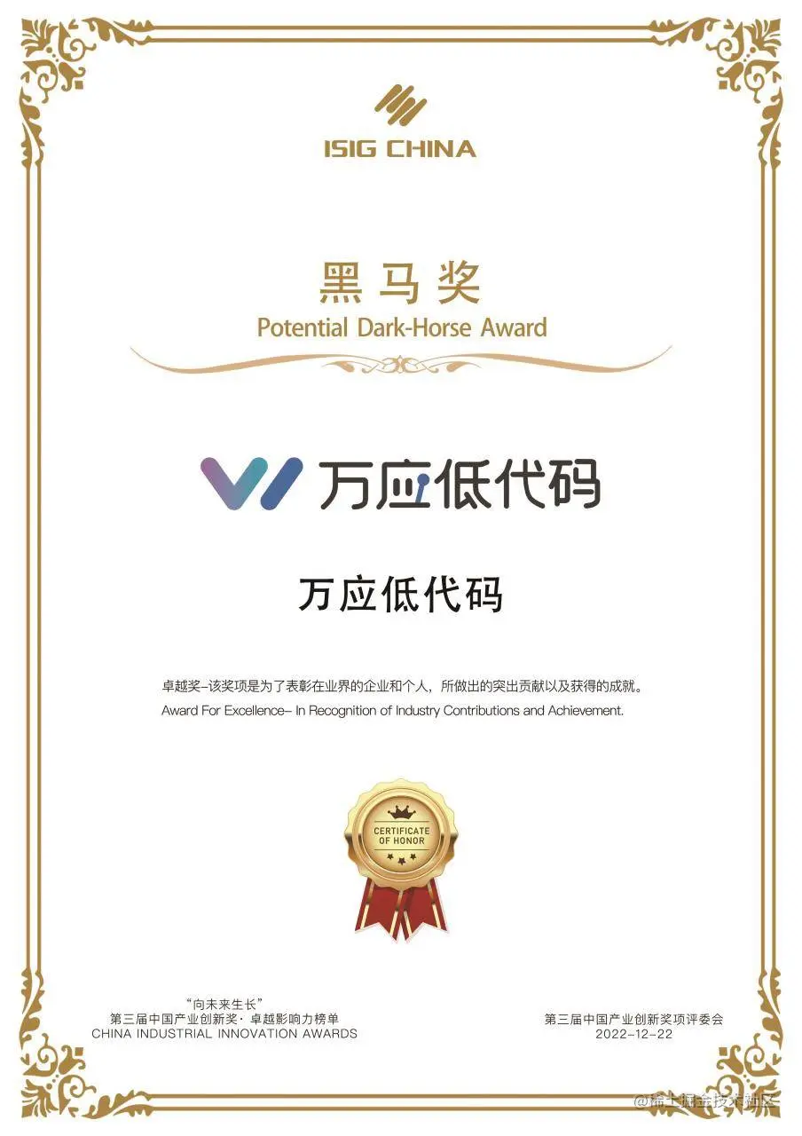 本次获奖,是行业对万应的肯定与认可。未来,万应低代码将不断提升综合实力,持续为各行业数智化转型提供技术支撑,让软件定义美好,携手行业伙伴一起助力数字经济发展,开启数字化新时代。