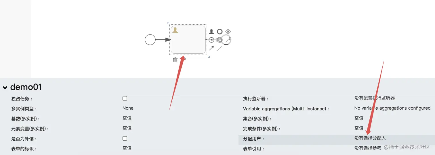 首先我们在绘制流程图的时候,不需要给 UserTask 分配用户,如下图: