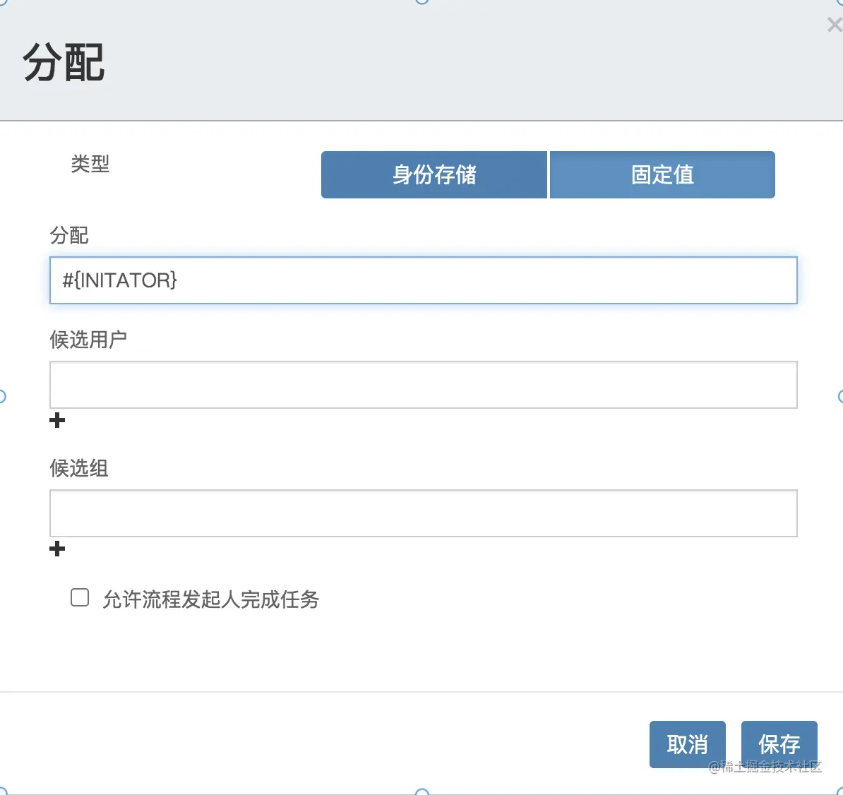 接下来,在给 UserTask 设置处理人的时候,设置处理人和任务的发起人的变量是同一个,如下图: