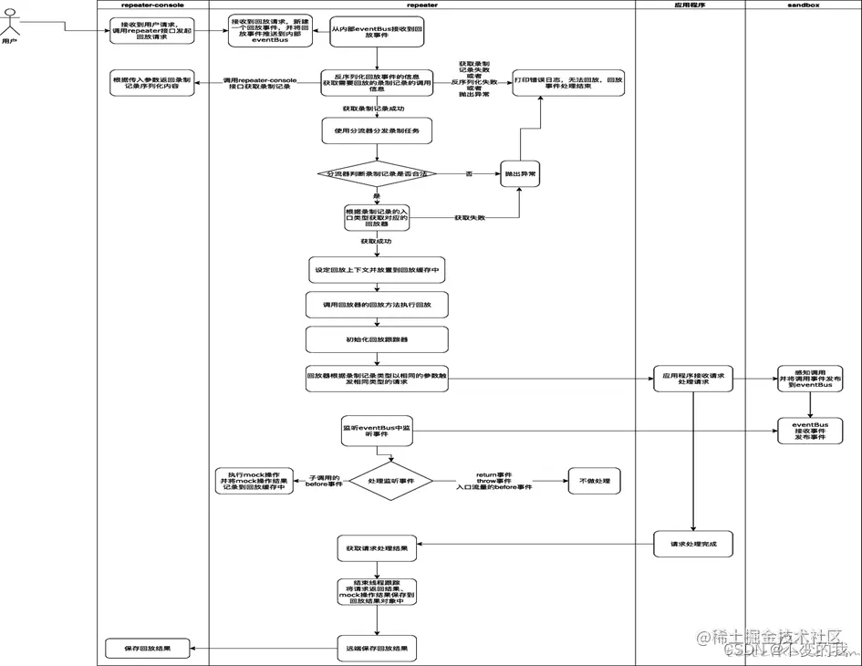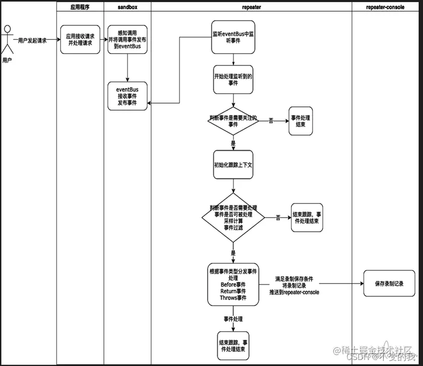 首先理解一个概念jvm-sandbox-repeater是基于jvm-sandbox框架技术扩展开发的一个实现了录制和回放功能的模块。官网中没有详细说明这个关系所以新同学很容易混淆。一个完整的录制回放的框架目录如下图(通过这个图片可以比较清晰的理解):