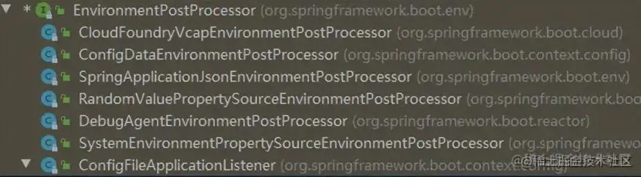 EnvironmentPostProcessor 的继承树如下所示。