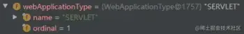 如果再引入 spring-boot-starter-web 包,则推断出来的 WebApplicationType 为 SERVLET,如下所示。