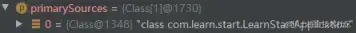这里的源,也就是 Spring 容器启动时依赖的初始配置类,在 Springboot 中,初始配置类通常为启动类。下面可以通过调试看一下 primarySources 字段的值,如下所示。