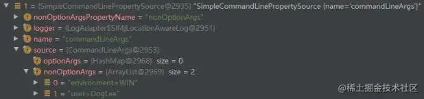 那么对应的 SimpleCommandLinePropertySource 如下所示。