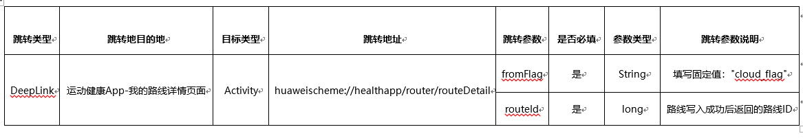 三方生态应用执行路线写入完成后,Health Kit服务端会生成并返回路线的唯一ID,生态应用可携带路线ID通过DeepLink方式跳转运动健康App我的路线详情页面,自动导入路线至运动健康App中。