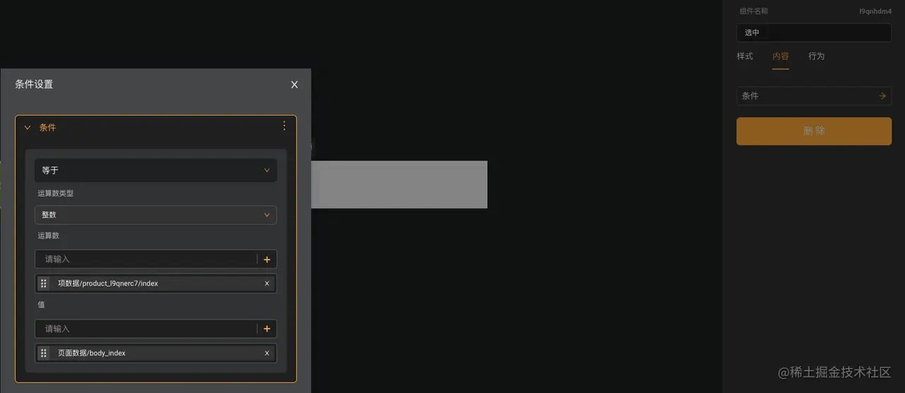 - 选中的条件是什么是你点击的第几个项,这边我们是用页面数据来接收的,所以条件配置是页面数据index=列表中的项数据对应的index。