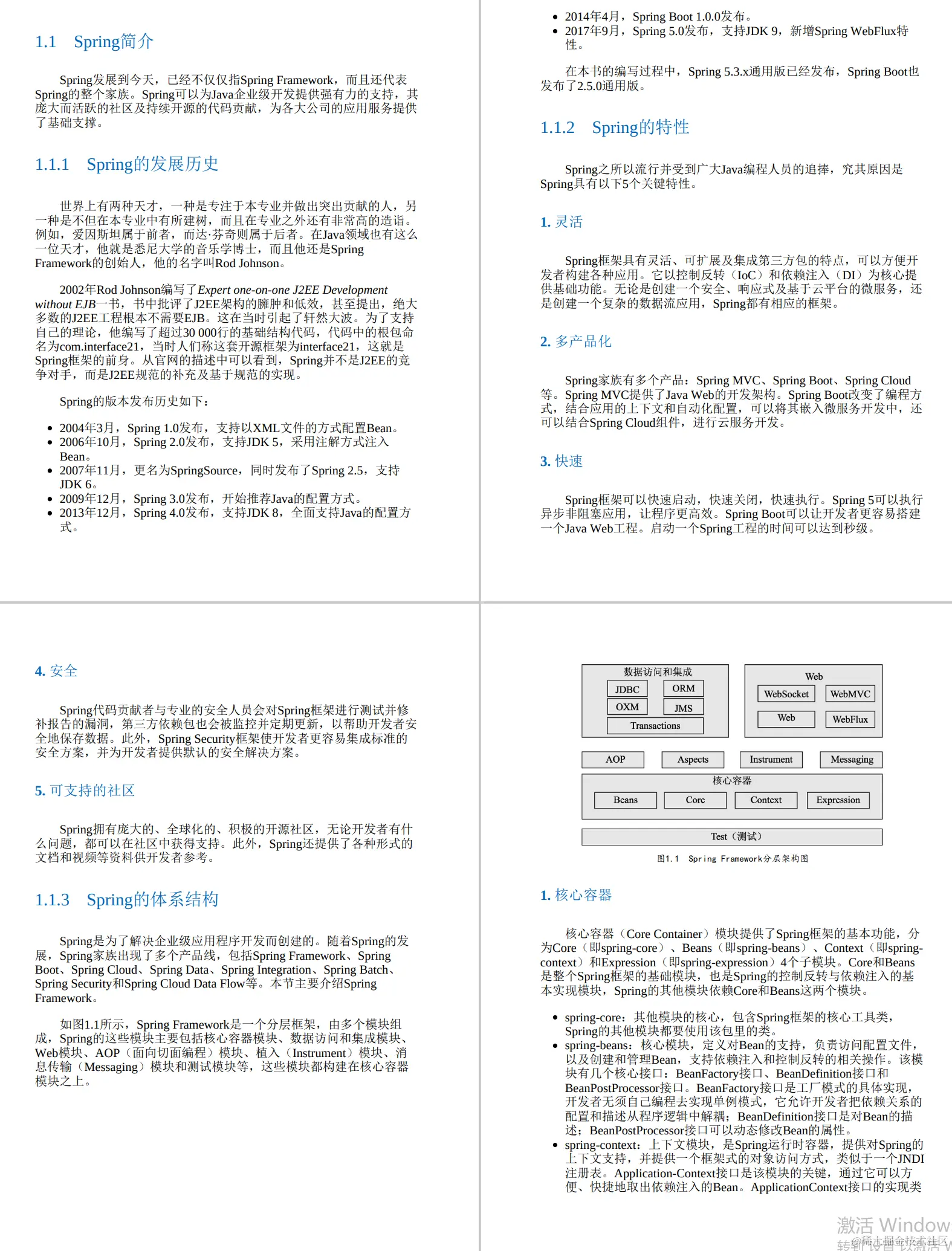 作为全 书的开篇,将介绍Spring框架的发展历史,以及Spring框架最核心的内 容——控制反转(Inversion of Control, IoC)与面向切面编程(Aspect Oriented Programming, AOP)原理,并给出代码示例。