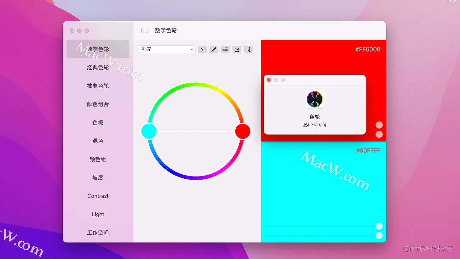 Color Wheel mac版是一款mac数字色轮工具,帮助您快速找到最匹配的颜色组合,设计师必备工具之一。